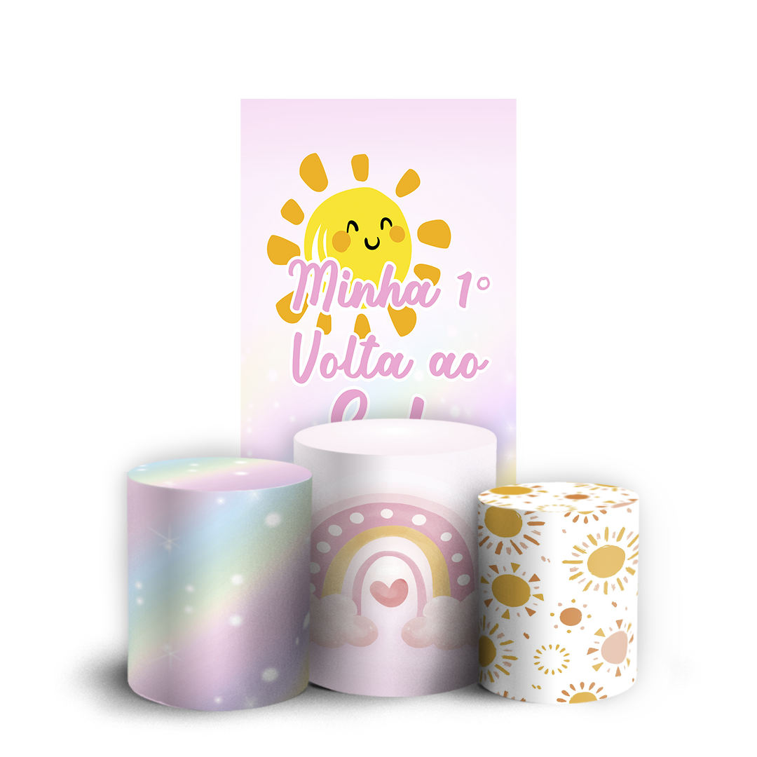 Itens do KIT: 1 Faixa Lateral Vest Facil: 150larg x 200altura em centimetros. 1 Trio Cilindro: G= 80alt x 50larg, M= 58alt x 44larg, P= 45alt x 38larg. Capa sublimada de painel redondo e trio cilindro, confeccionados em tecido helanca 225g, 100% poliéster, com acabamento em elástico. Observação: Não inclui estrutura ou suporte.