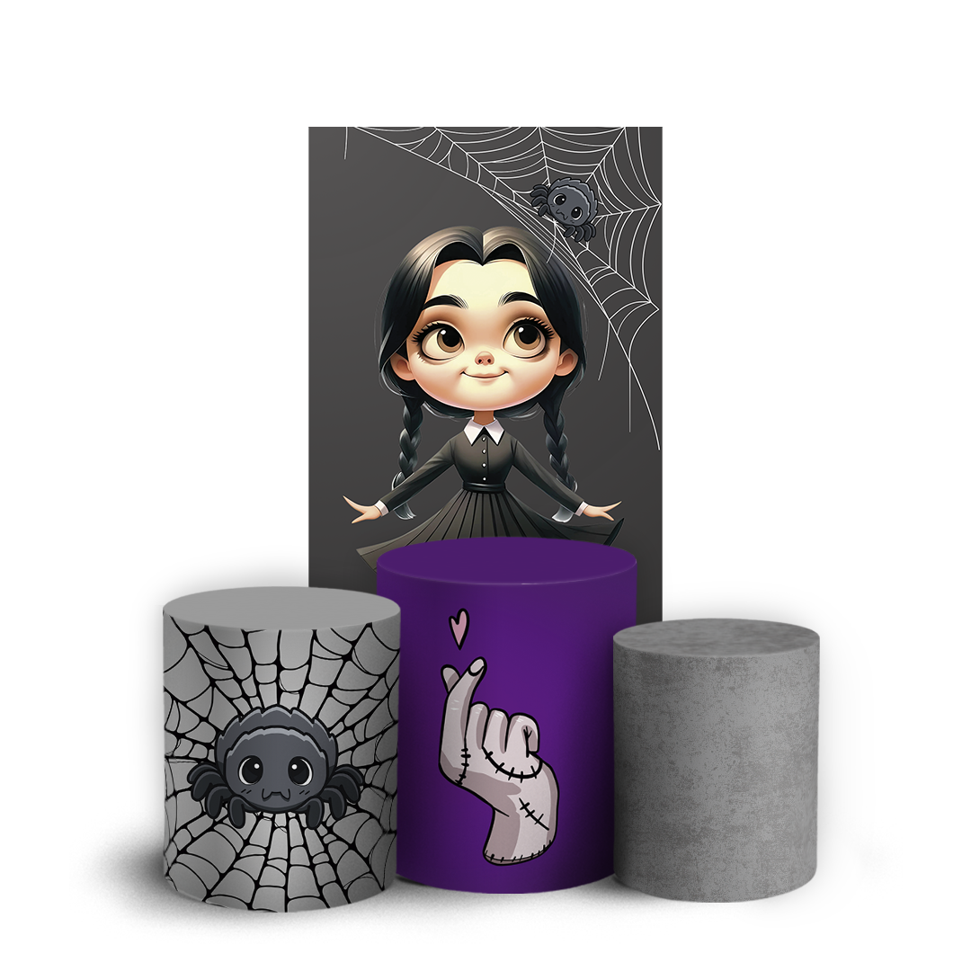 Itens do KIT: 1 Faixa Lateral Vest Facil: 150larg x 200altura em centimetros. 1 Trio Cilindro: G= 80alt x 50larg, M= 58alt x 44larg, P= 45alt x 38larg. Capa sublimada de painel redondo e trio cilindro, confeccionados em tecido helanca 225g, 100% poliéster, com acabamento em elástico. Observação: Não inclui estrutura ou suporte.