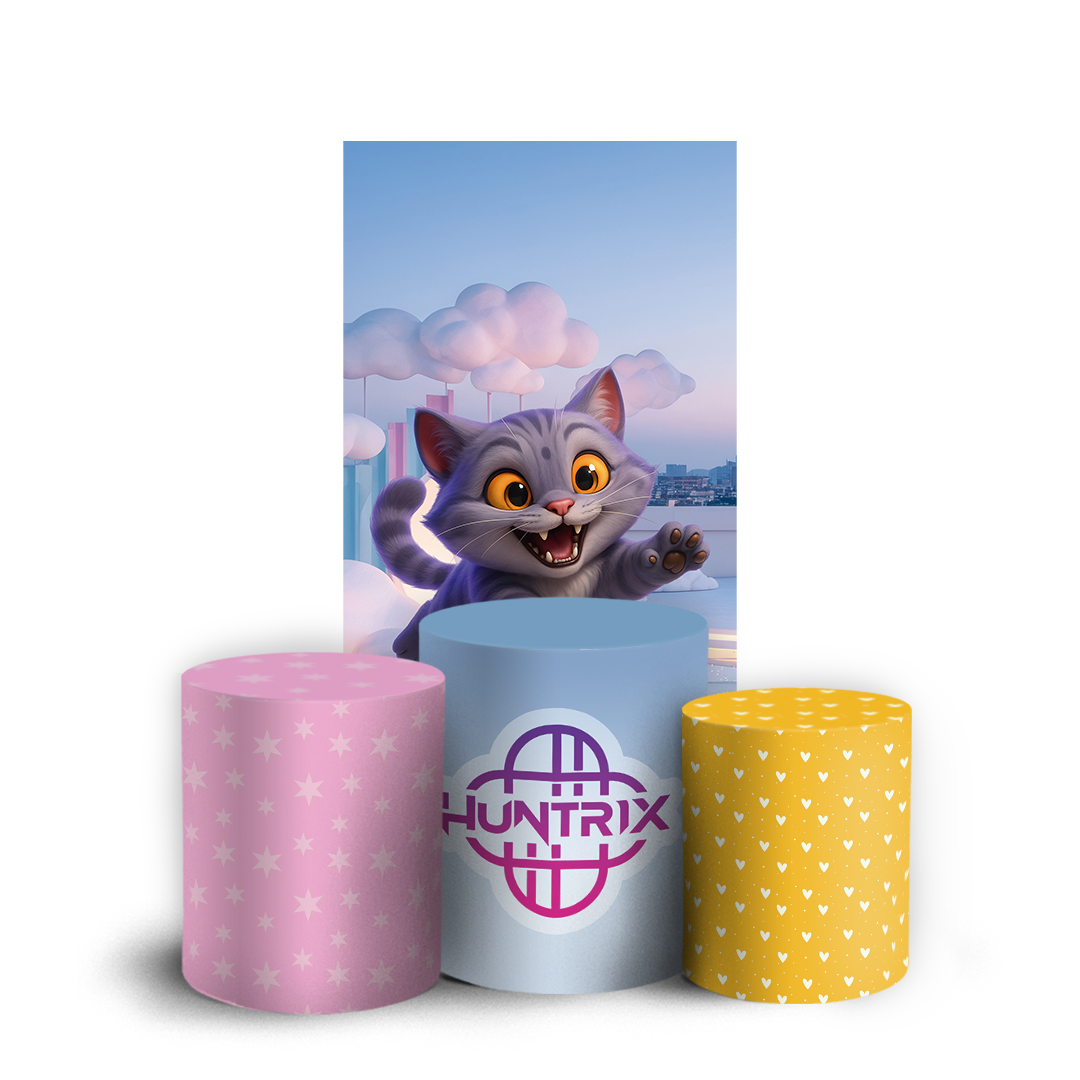 Itens do KIT: 1 Faixa Lateral Vest Facil: 150larg x 200altura em centimetros. 1 Trio Cilindro: G= 80alt x 50larg, M= 58alt x 44larg, P= 45alt x 38larg. Capa sublimada de painel redondo e trio cilindro, confeccionados em tecido helanca 225g, 100% poliéster, com acabamento em elástico. Observação: Não inclui estrutura ou suporte.