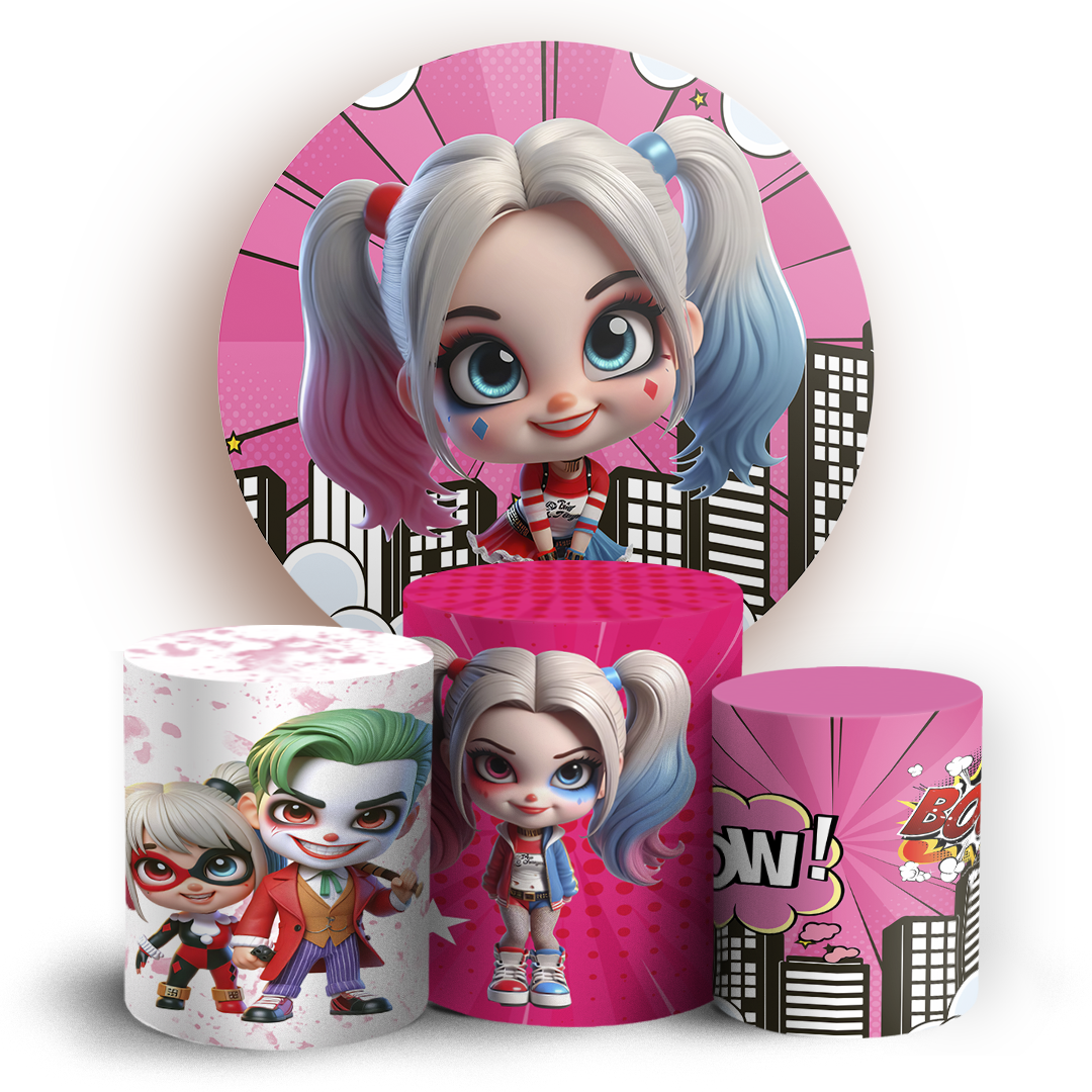 KIT Redondo e Trio - Arlequina e Coringa - Sublimado 3D