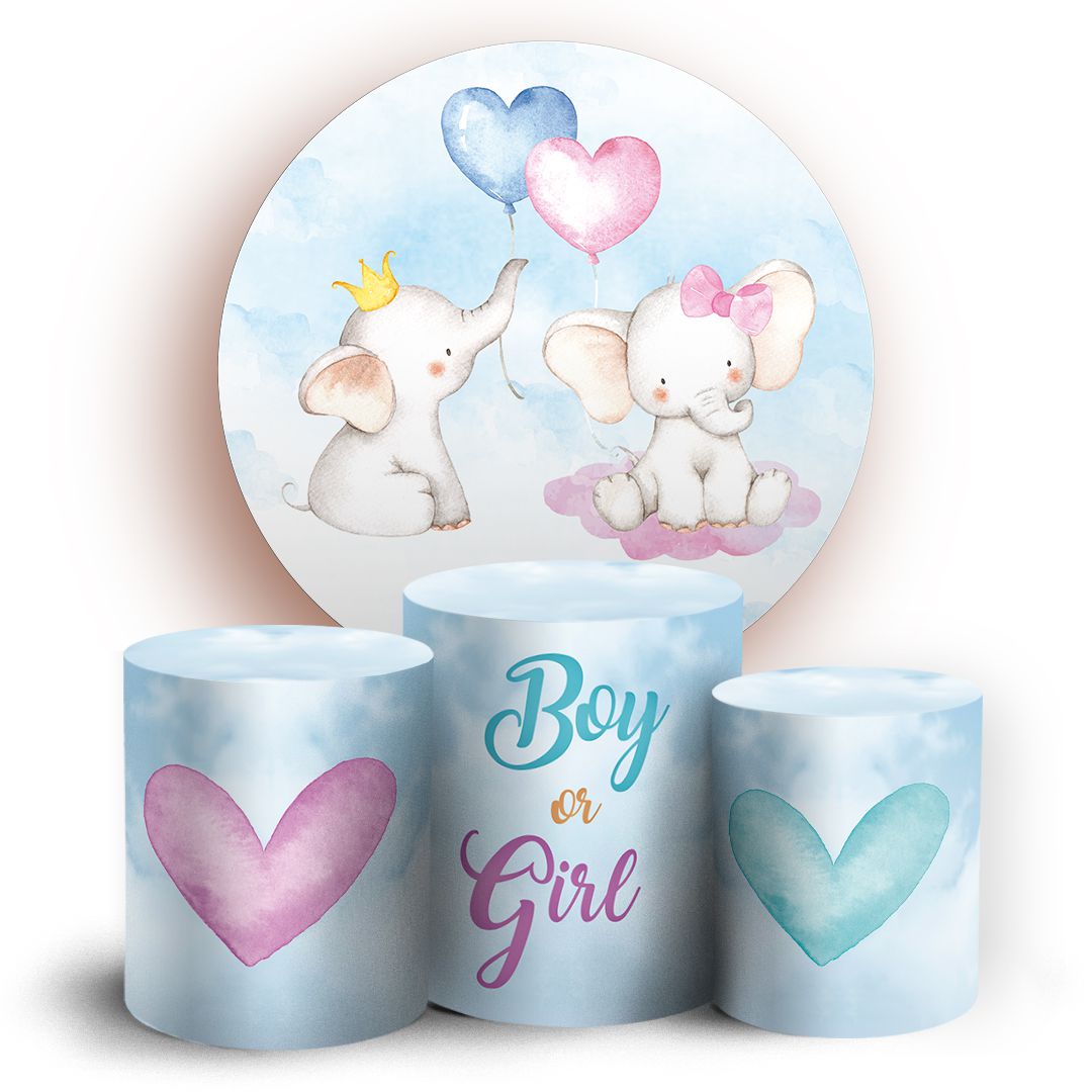 KIT Redondo e Trio - Elefantinho Revelacao - Sublimado 3D