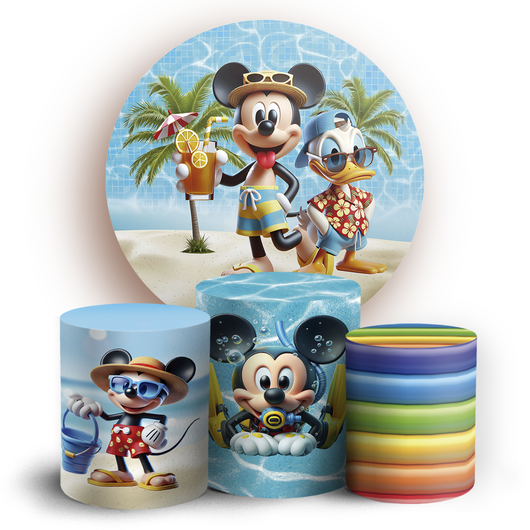 KIT Redondo e Trio - Mickey Pool Party - Sublimado 3D
