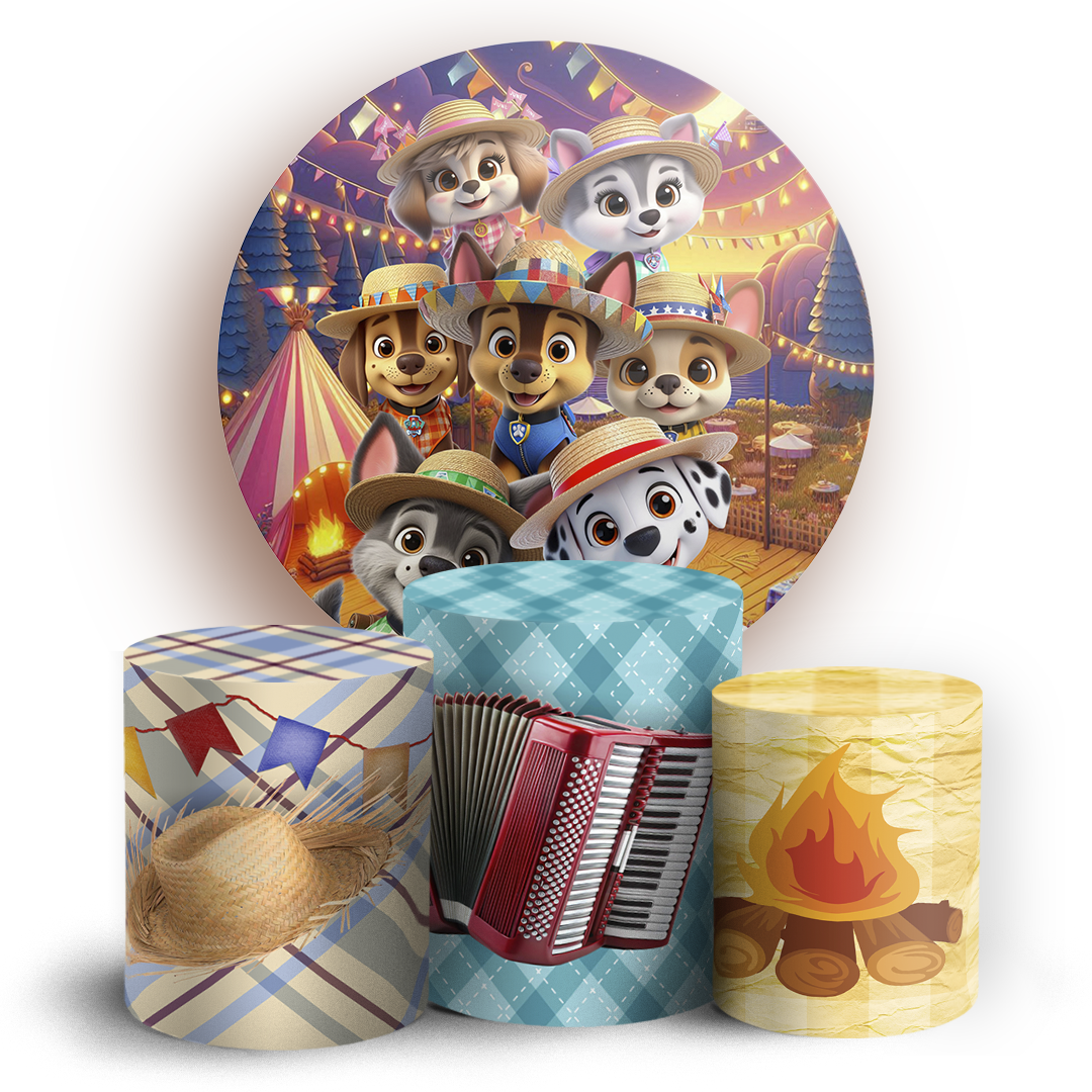 KIT Redondo e Trio - Patrulha Canina Festa Junina - Sublimado 3D