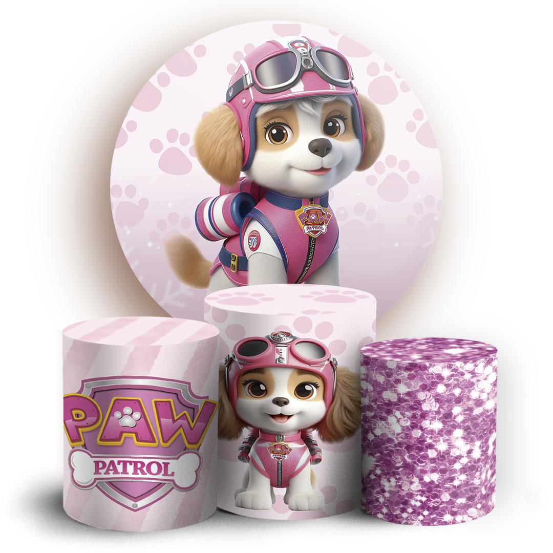 KIT Redondo e Trio - Patrulha Canina Rosa - Sublimado 3D