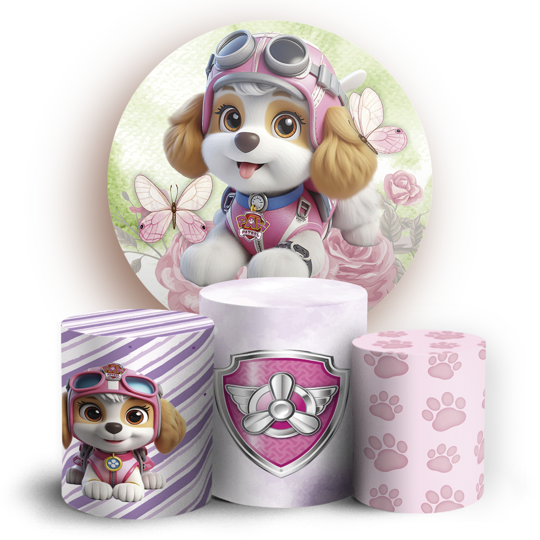 KIT Redondo e Trio - Patrulha Canina Rosa - Sublimado 3D