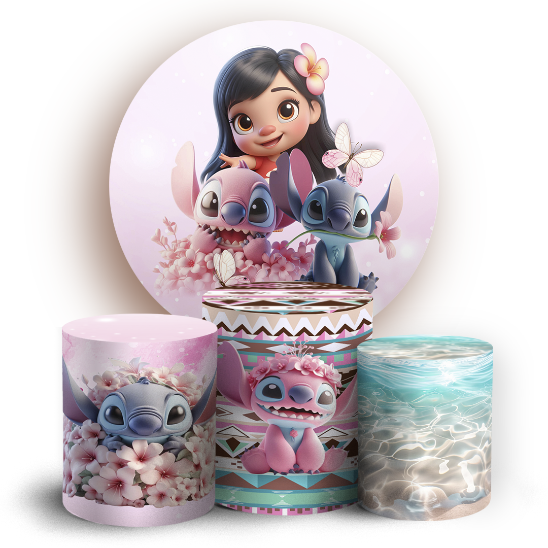 KIT Redondo e Trio - Stitch Rosa - Sublimado 3D