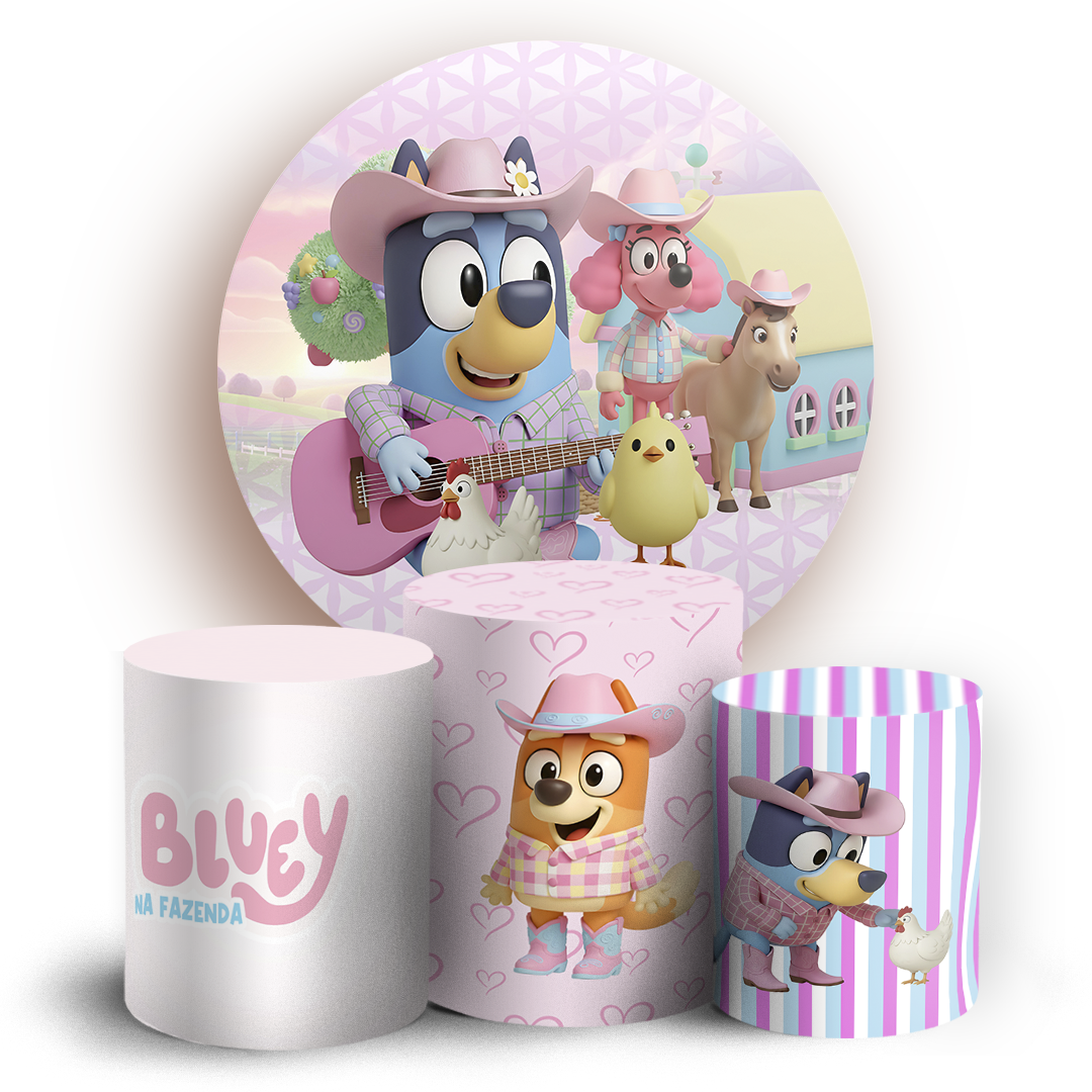 KIT Redondo e Trio Sublimado 3D - Bluey Fazendinha