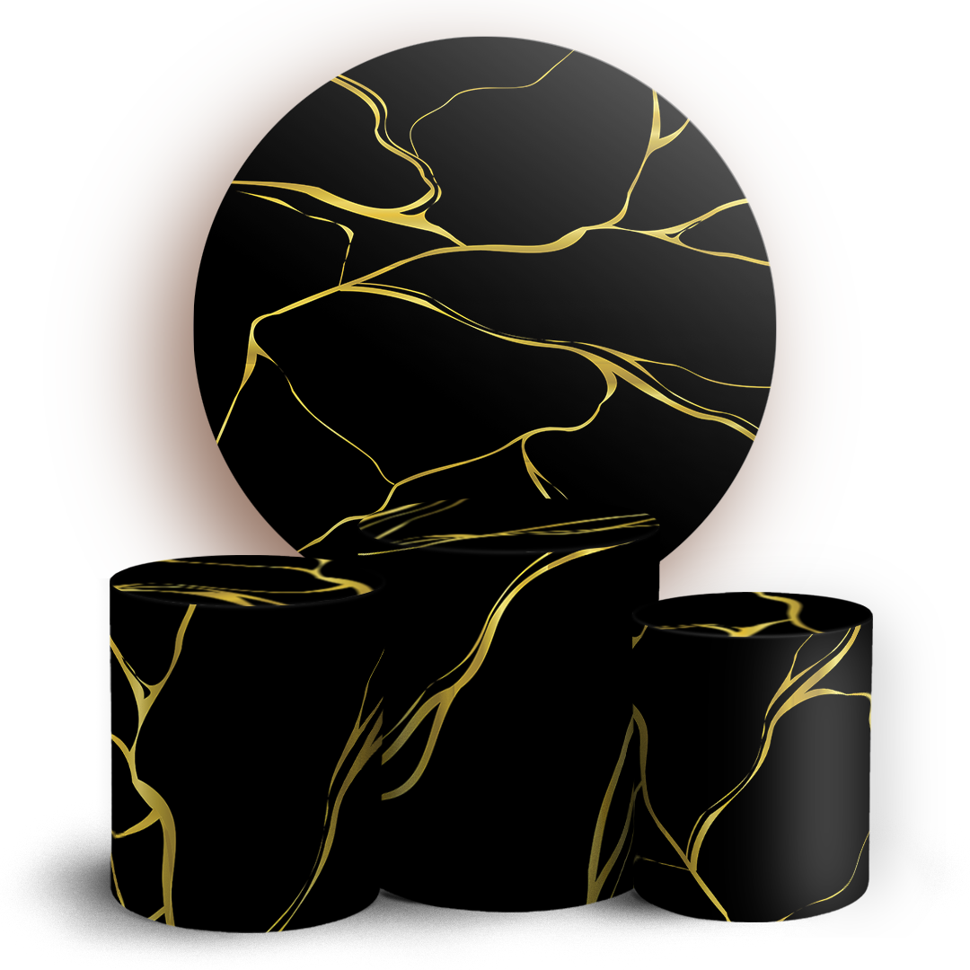 KIT Redondo e Trio Sublimado 3D - Marmore Dourado