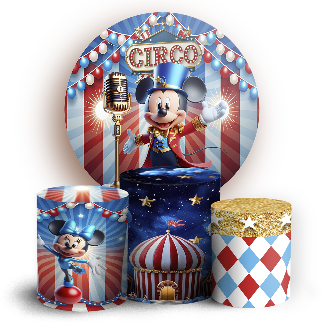 KIT Redondo e Trio Sublimado 3D - Mickey E Minnie Circo