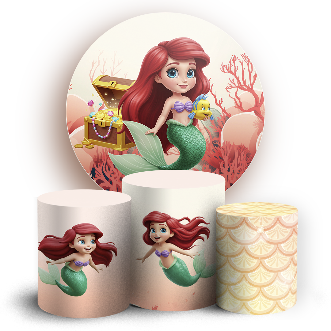 KIT Redondo e Trio Sublimado 3D - Princesa Ariel Pequena Sereia