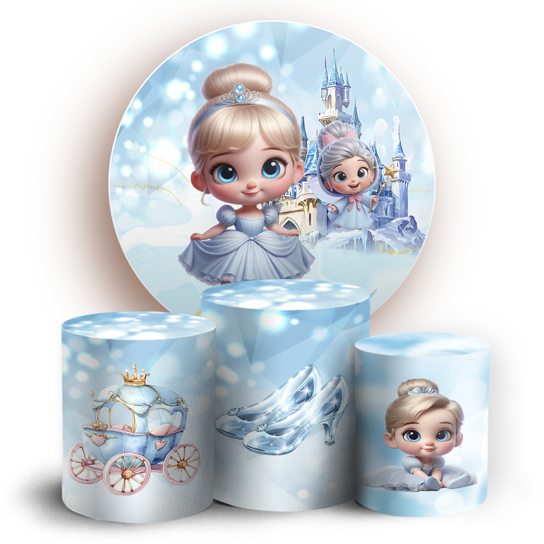 KIT Redondo e Trio Sublimado 3D - Princesa Cinderela