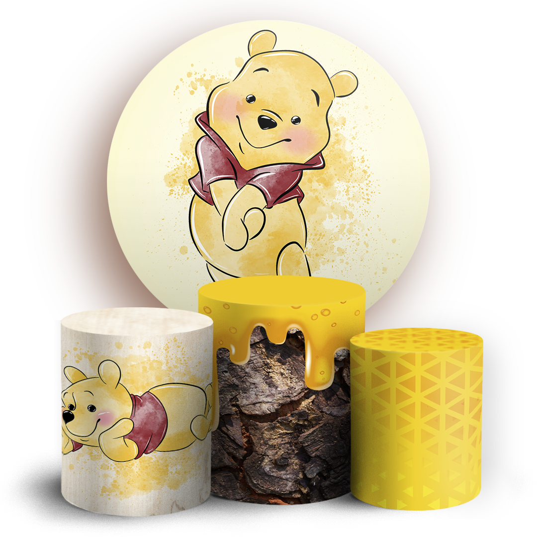 KIT Redondo e Trio - Ursinho Pooh Aquarela - Sublimado 3D