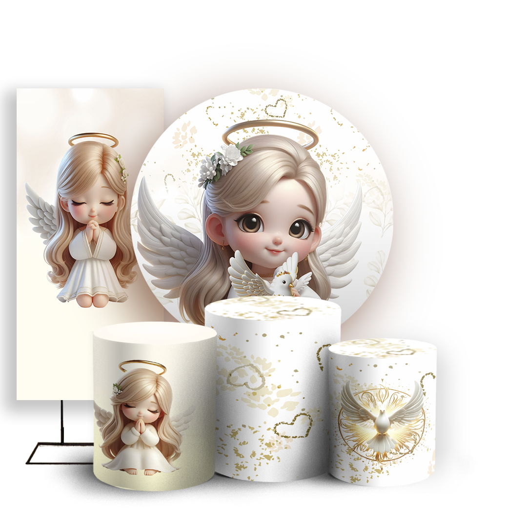 KIT Redondo Trio e Faixa - Anjos Batismo - Sublimado 3D