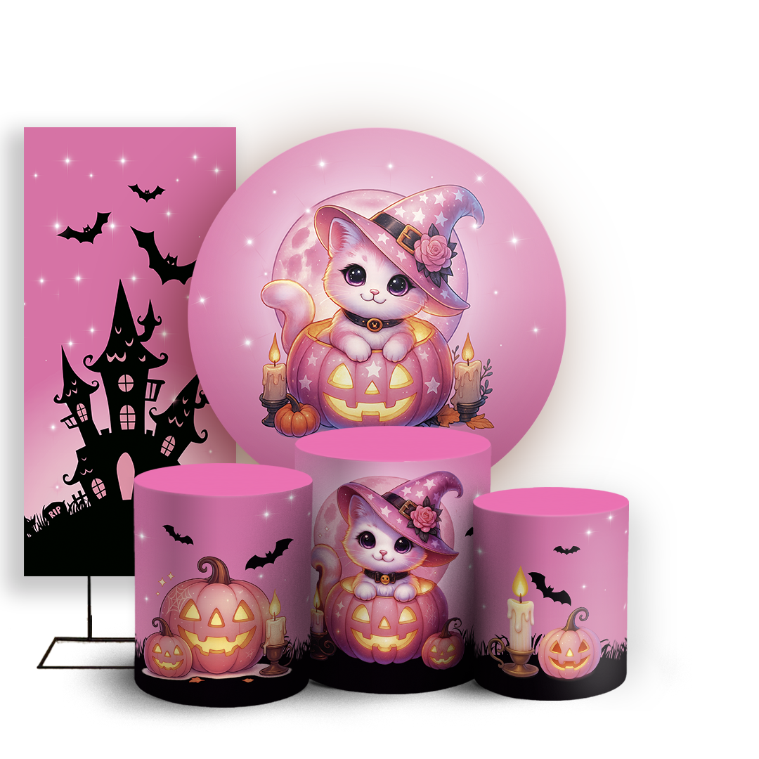 KIT Redondo Trio e Faixa - Gato Dia das Bruxas Halloween - Sublimado 3D