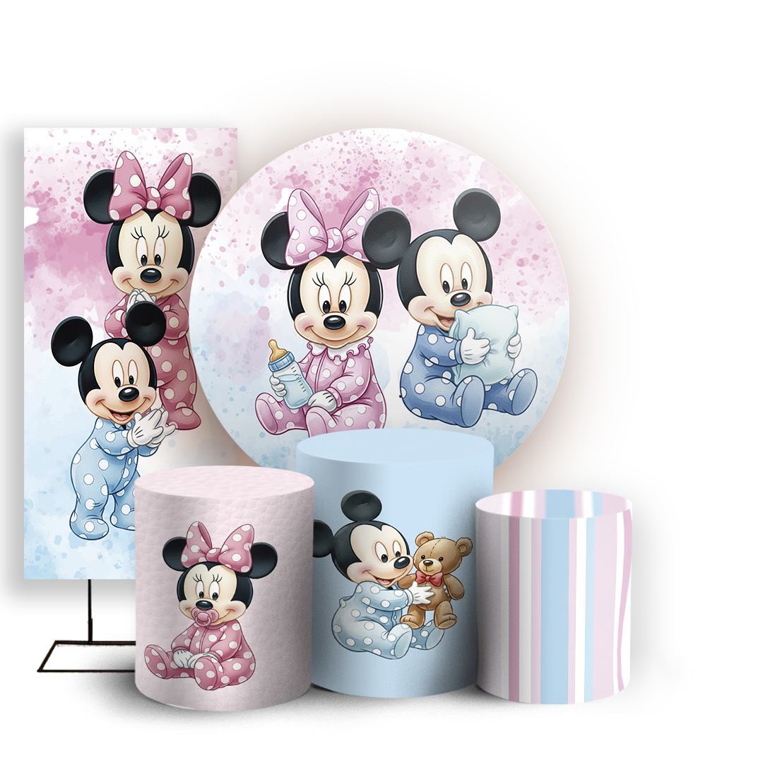 KIT Redondo Trio e Faixa - Mickey E Minnie Baby - Sublimado 3D