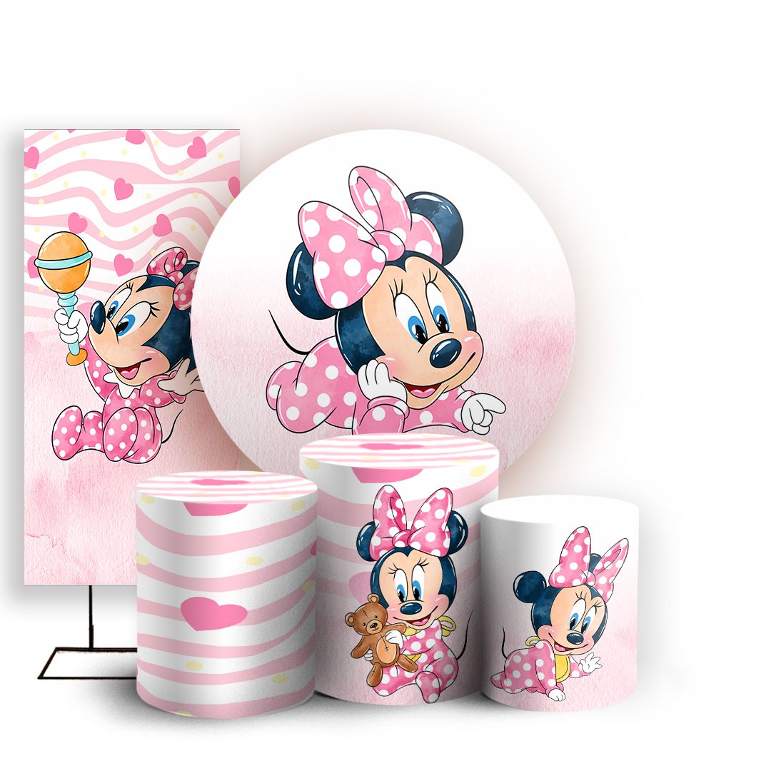 KIT Redondo Trio e Faixa - Minnie Baby - Sublimado 3D