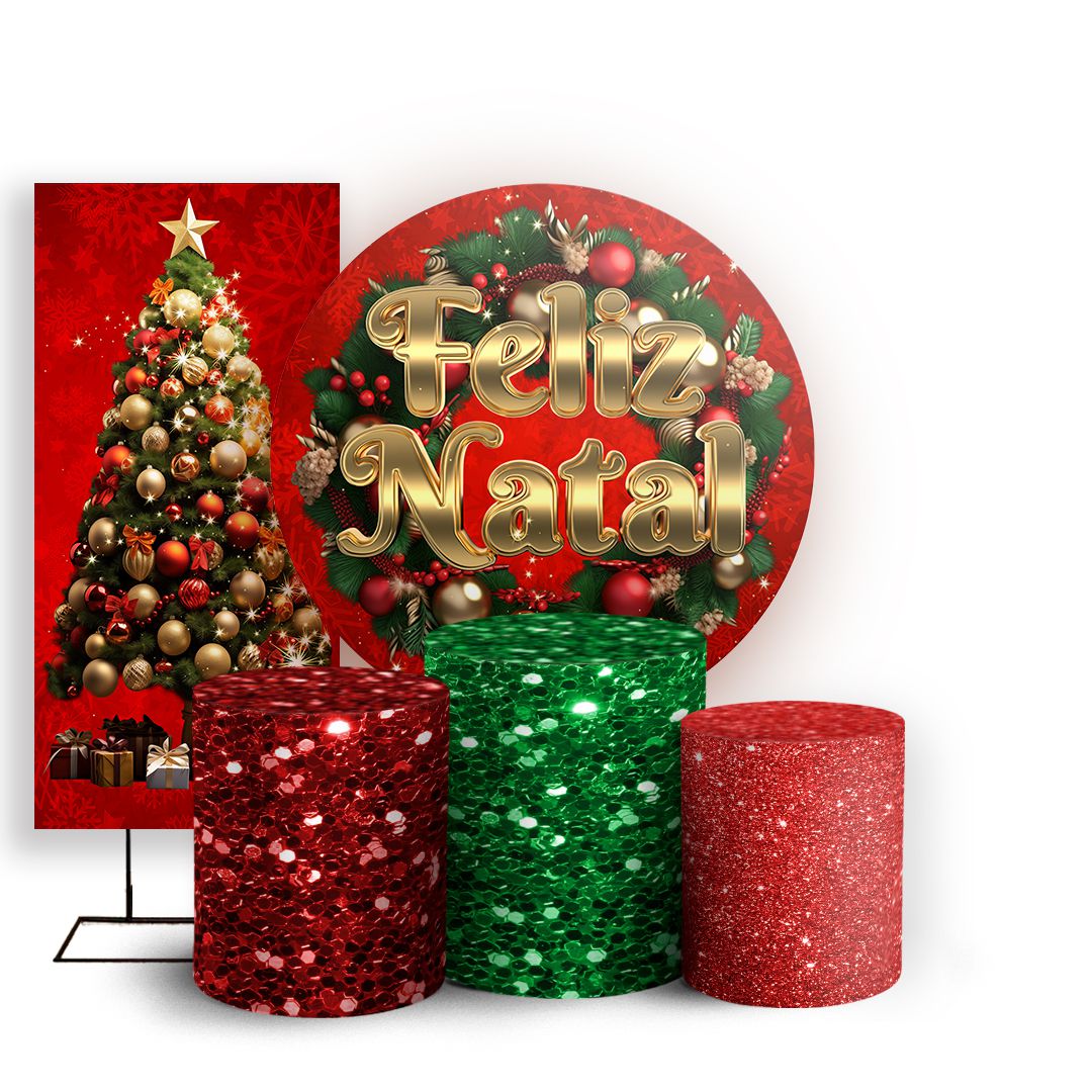 KIT Redondo Trio e Faixa - Natal Ano Novo - Sublimado 3D