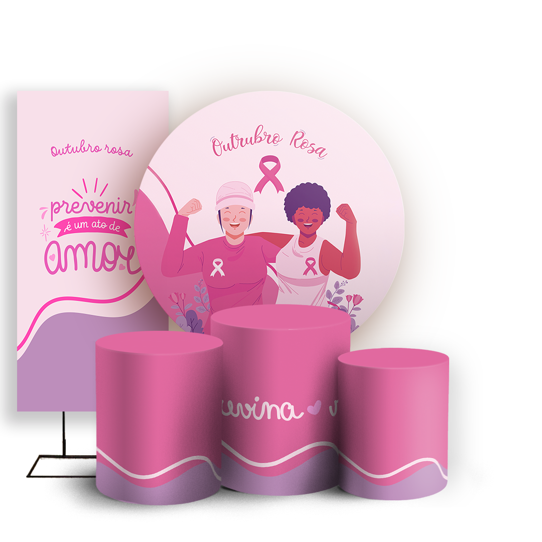 KIT Redondo Trio e Faixa - Outubro Rosa - Sublimado 3D