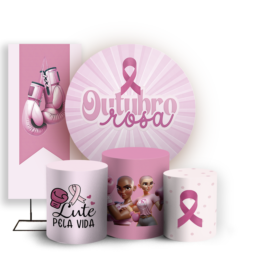 KIT Redondo Trio e Faixa - Outubro Rosa - Sublimado 3D