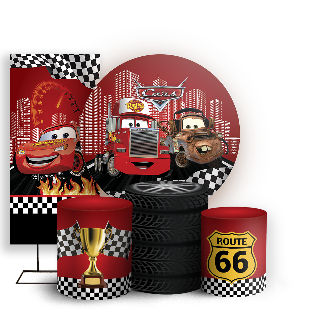KIT Redondo Trio e Faixa Sublimado 3D - Carros