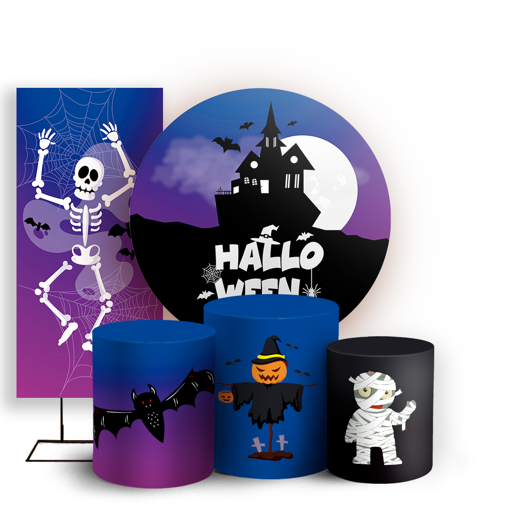 KIT Redondo Trio e Faixa Sublimado 3D - Dia das Bruxas Halloween