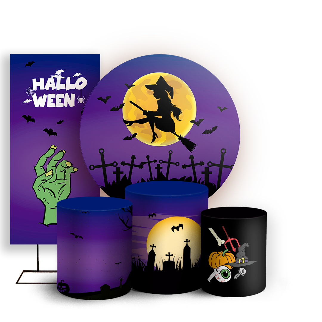 KIT Redondo Trio e Faixa Sublimado 3D - Dia das Bruxas Halloween