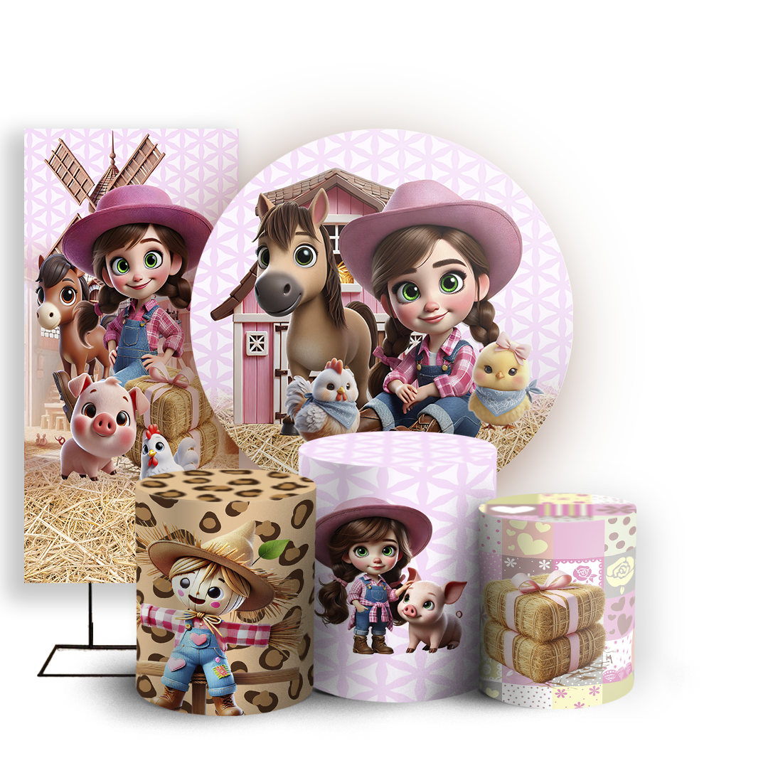 KIT Redondo Trio e Faixa Sublimado 3D - Fazendinha