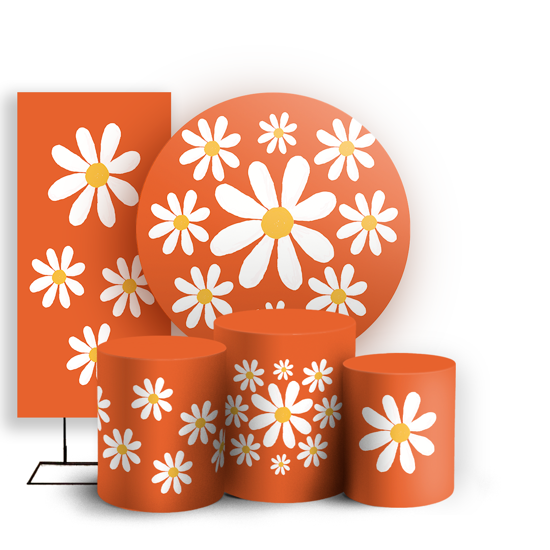 KIT Redondo Trio e Faixa Sublimado 3D - Flor Margarida