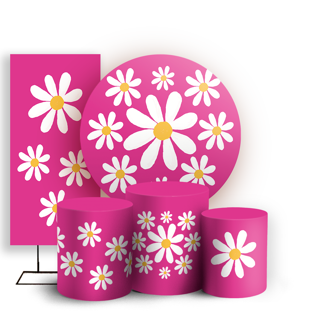 KIT Redondo Trio e Faixa Sublimado 3D - Flor Margarida