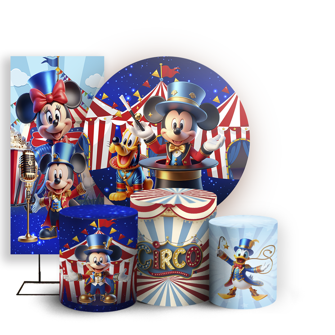 KIT Redondo Trio e Faixa Sublimado 3D - Mickey E Minnie Circo