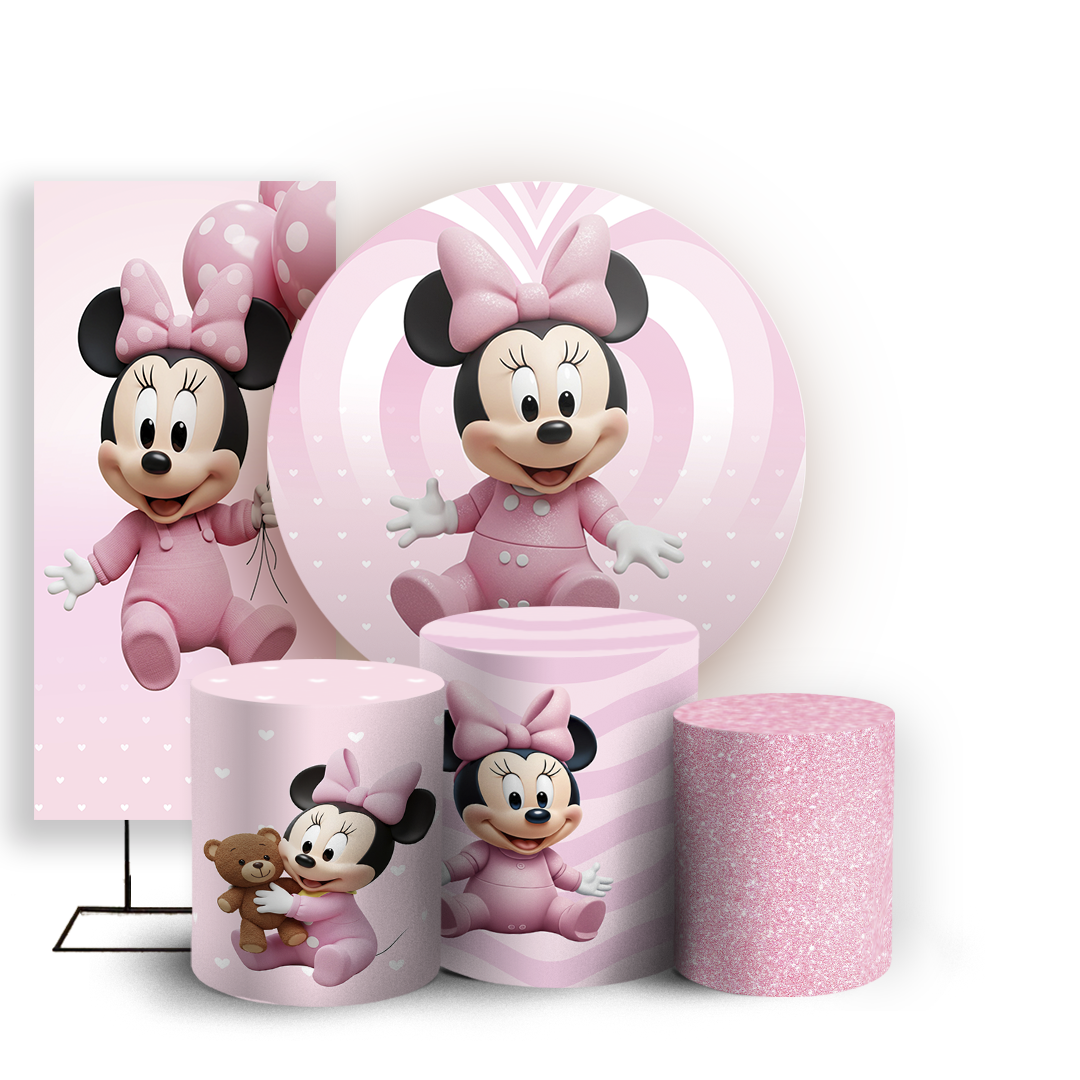 KIT Redondo Trio e Faixa Sublimado 3D - Minnie