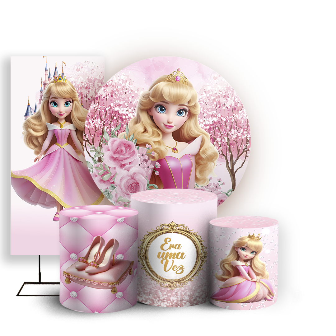 KIT Redondo Trio e Faixa Sublimado 3D - Princesa Aurora