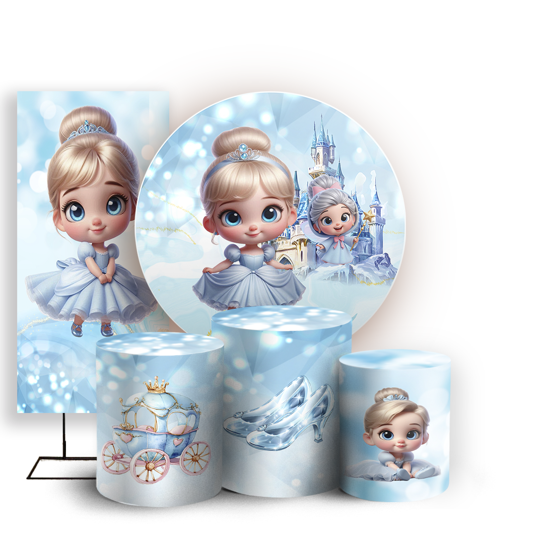 KIT Redondo Trio e Faixa Sublimado 3D - Princesa Cinderela