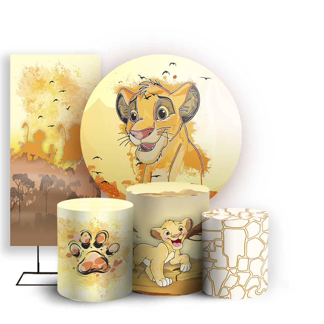 KIT Redondo Trio e Faixa Sublimado 3D - Rei Leão Aquarela