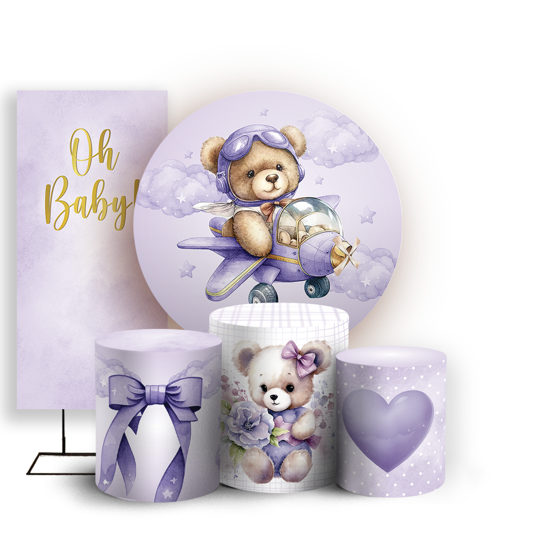 KIT Redondo Trio e Faixa Sublimado 3D - Ursinha Lilás