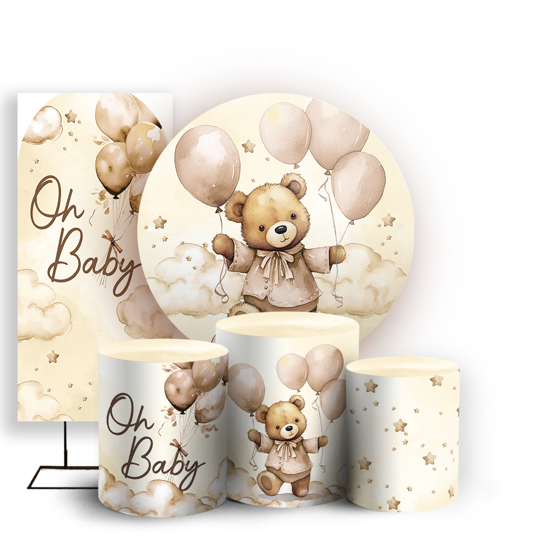 KIT Redondo Trio e Faixa Sublimado 3D - Ursinho Bege