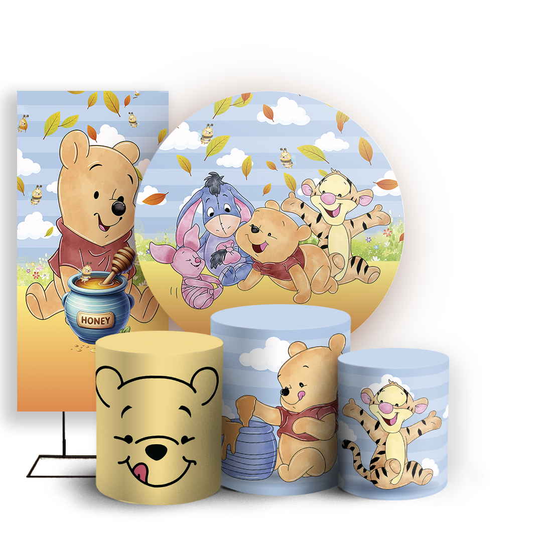 KIT Redondo Trio e Faixa Sublimado 3D - Ursinho Pooh