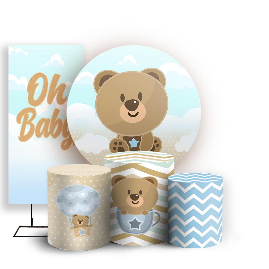 KIT Redondo Trio e Faixa Sublimado 3D - Urso Oh Baby