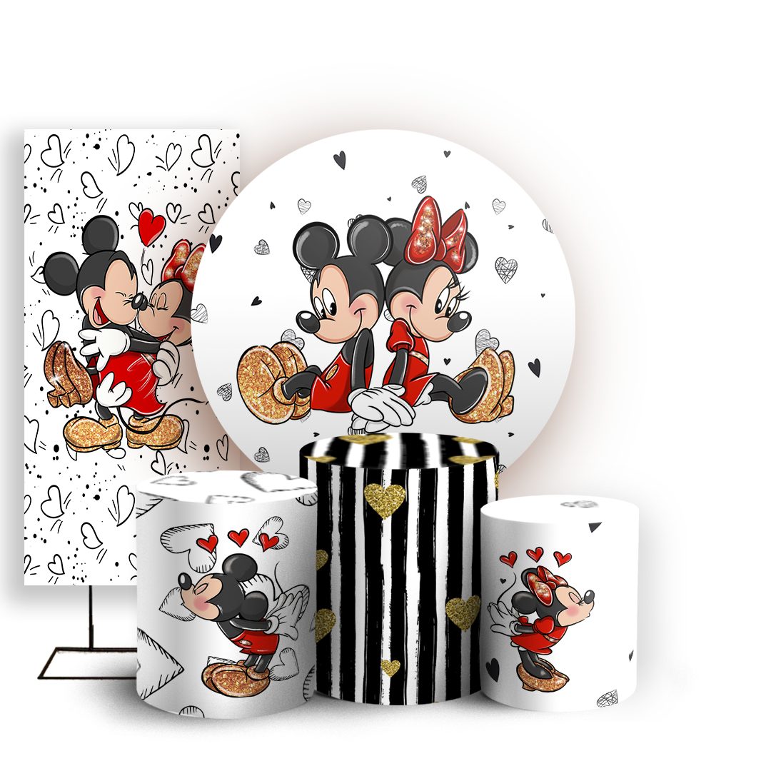 KIT Redondo Trio e Faixa Sublimado - Mickey-E-Minnie