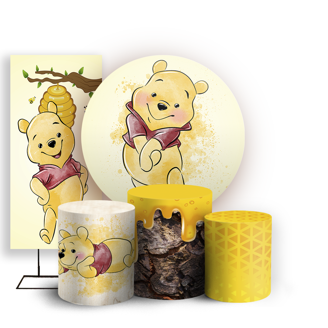 KIT Redondo Trio e Faixa - Ursinho Pooh Aquarela - Sublimado 3D
