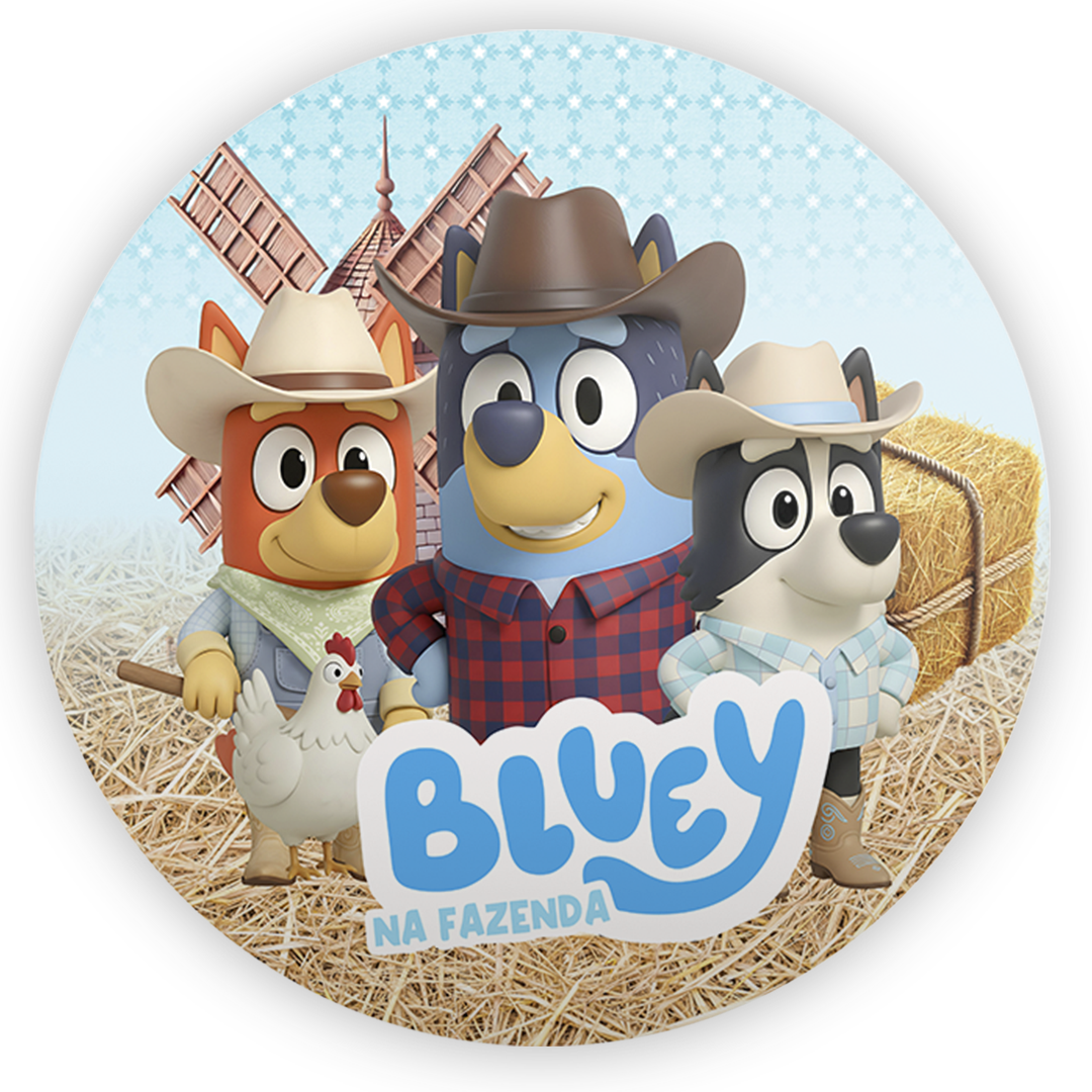 Painel Redondo Sublimado 3D - Bluey Fazendinha