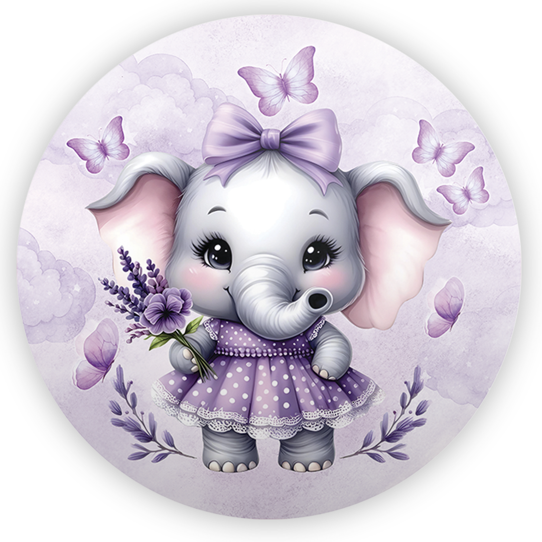 Painel Redondo Sublimado 3D - Elefantinha Lilás