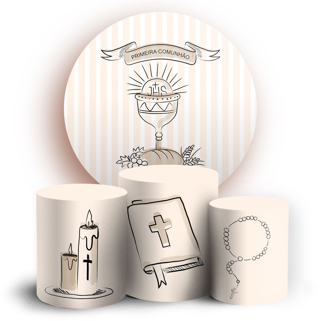 KIT Redondo e Trio - Primeira Comunhao - Sublimado 3D