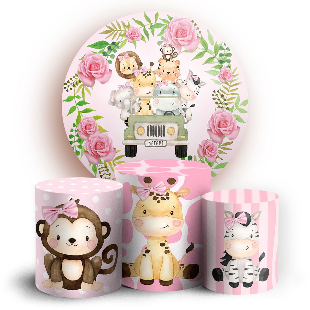 KIT Redondo e Trio - Safari Rosa - Sublimado 3D