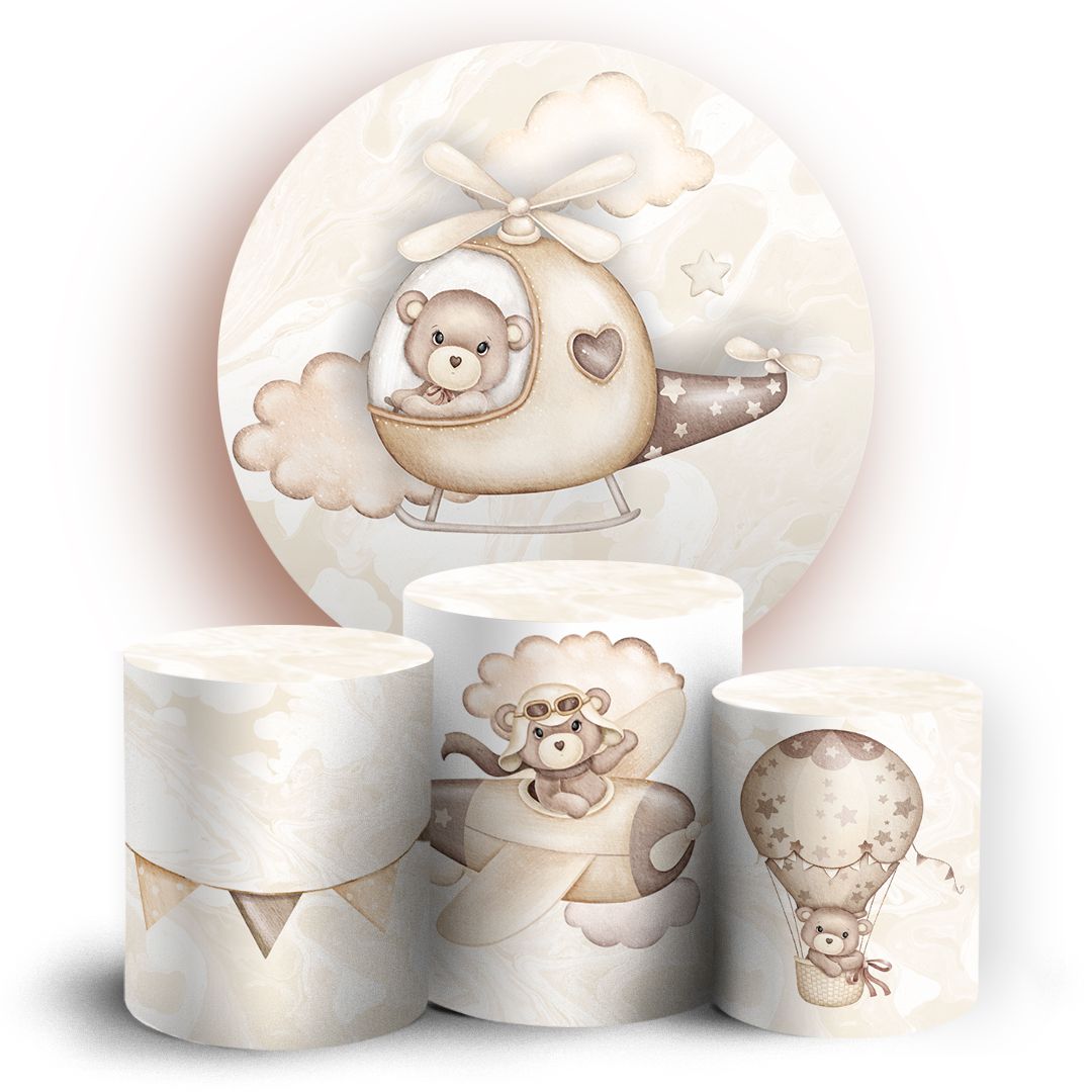 KIT Redondo e Trio - Ursinho Baloeiro Marrom - Sublimado 3D