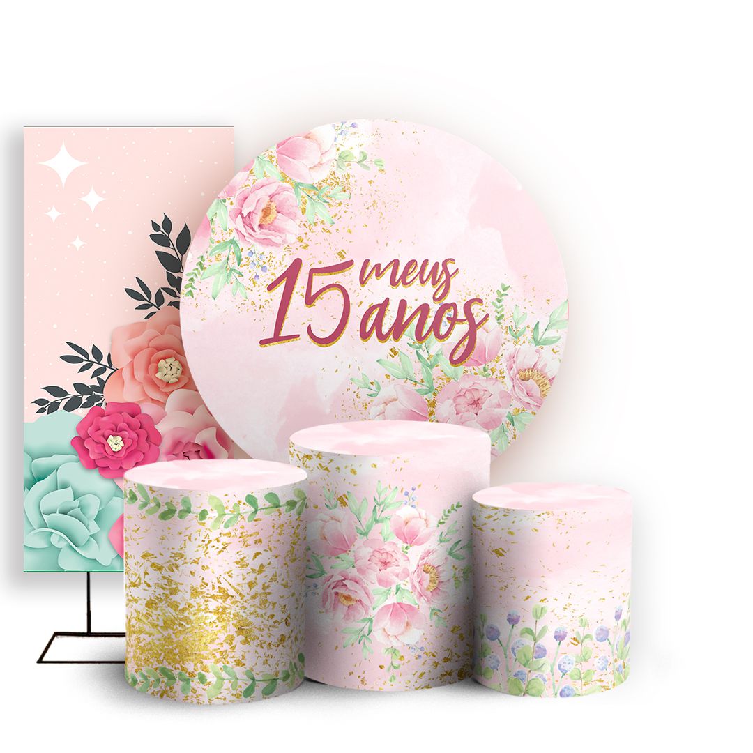 KIT Redondo Trio e Faixa - 15 Anos - Sublimado 3D