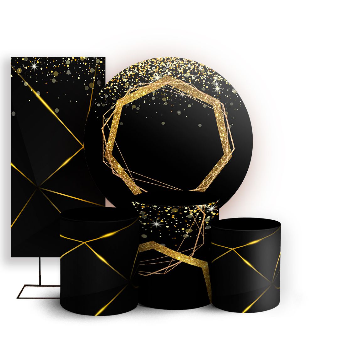 KIT Redondo Trio e Faixa - Abstrato Glitter - Sublimado 3D