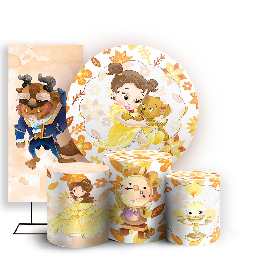 KIT Redondo Trio e Faixa - Bela e Fera Cute - Sublimado 3D