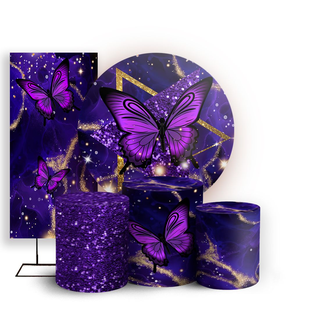 KIT Redondo Trio e Faixa - Borboleta Roxa - Sublimado 3D