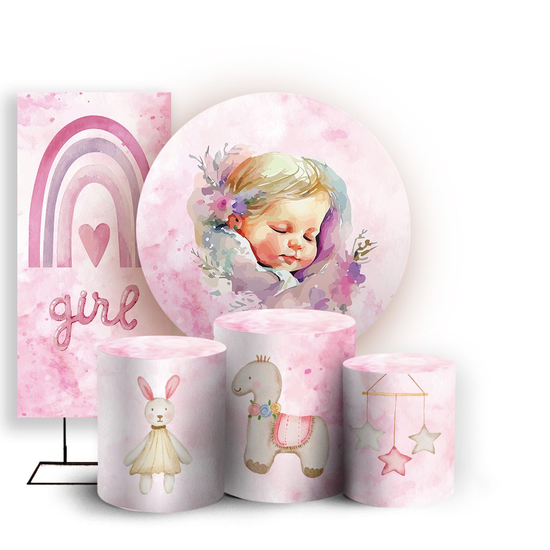 KIT Redondo Trio e Faixa - Cha de Bebe - Sublimado 3D
